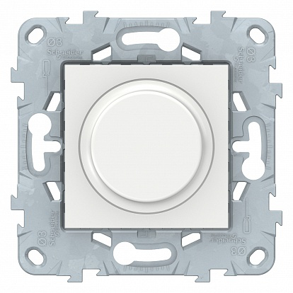 Светорегулятор Schneider Electric UNICA (белый) поворотно-нажимной универсальный с винтовыми зажимами на мощность 5-200 Вт.- Дистанционное управление с помощью неограниченного количества вспомогательных кнопочных выключателей.
