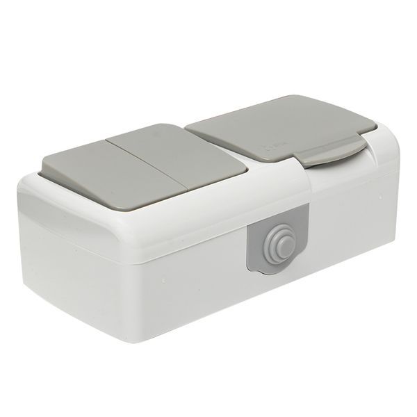 Блок из двухклавишного выключателя и розетки EKF серии Мурманск позволяет организовать электроснабжение в условиях высокой влажности и пыльных помещениях, на улице при условии установки под навесом. Ступенчатые герметичные вводы с двух сторон изделия обеспечивают надежную защиту, позволяя использовать устройство в агрессивных условиях.