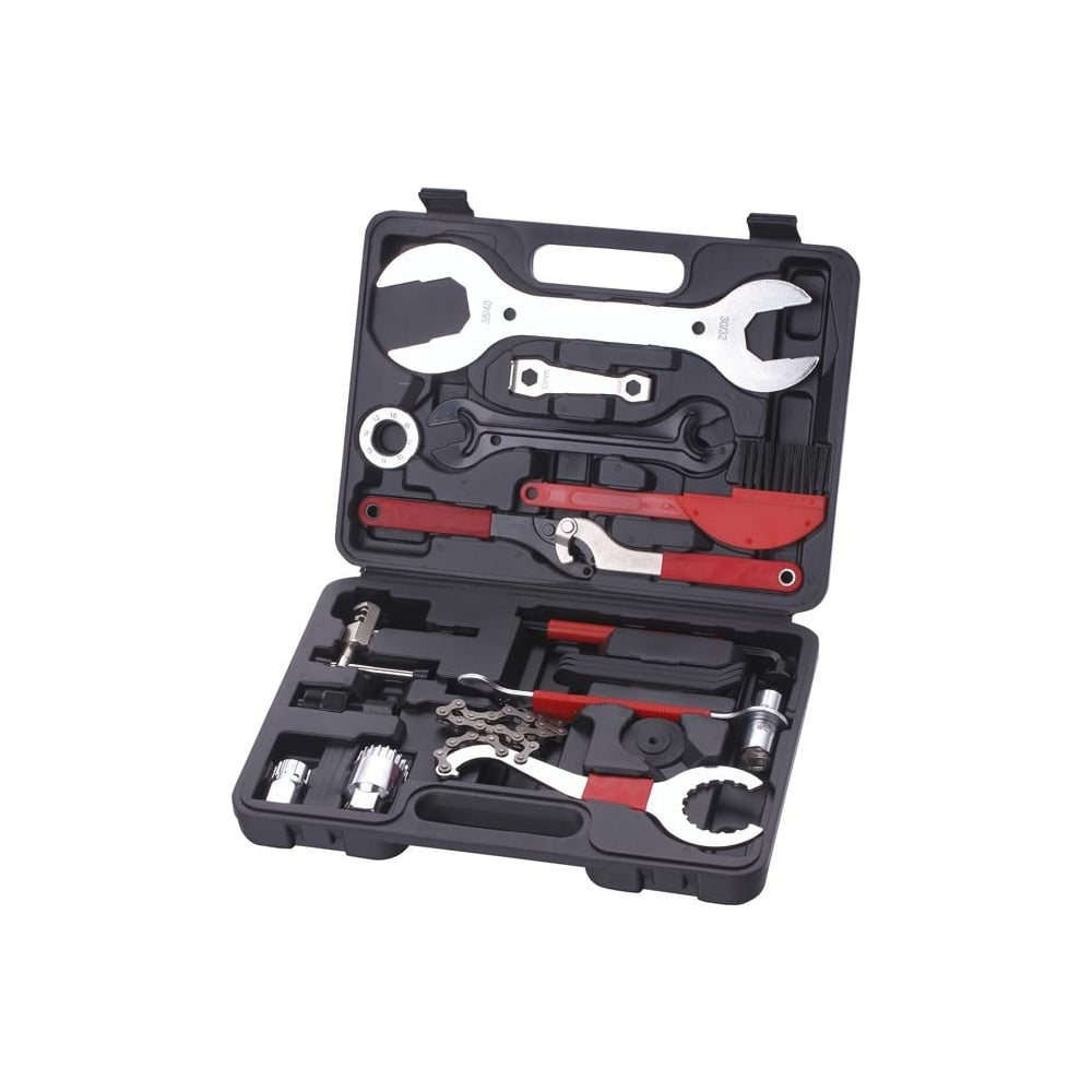Набор инструментов подойдет для горных и дорожных велосипедов, детских велосипедов и BMX. Включает в себя все необходимые велоинструменты как для быстрого обслуживания, так и для полноценного ремонта и переборки велосипеда.