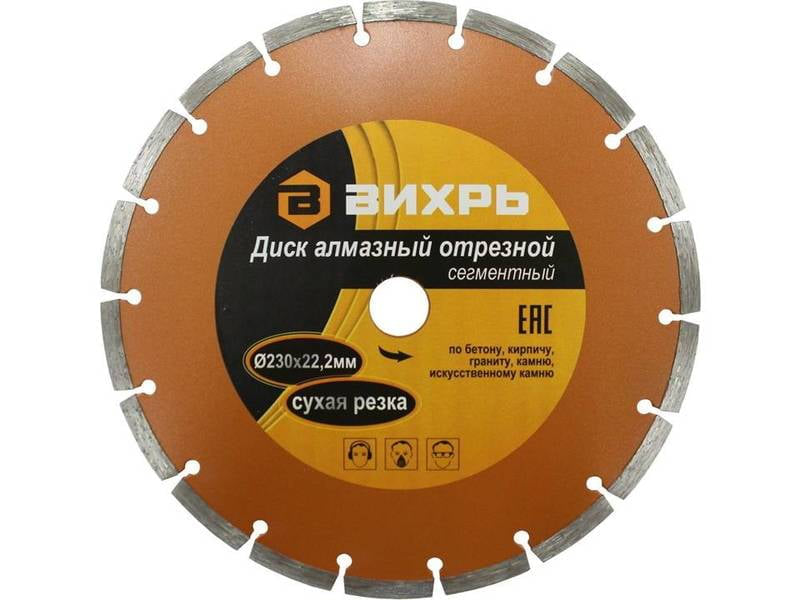Диск алмазный 230 х 22,2 мм, отрезной, сегментный, сухая резка 73/10/3/5 является надежным и эффективным инструментом для профессиональной и домашней резки твердых материалов.