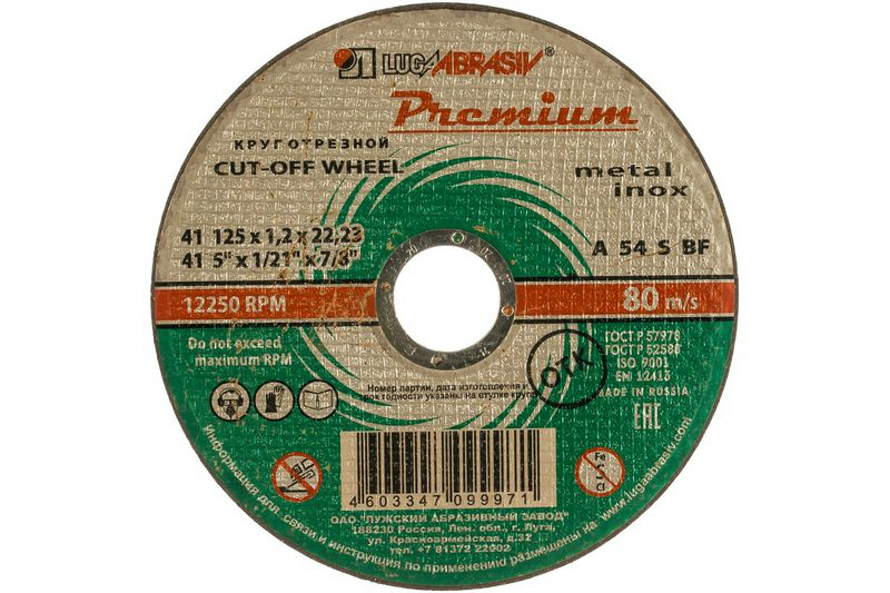 В нашем магазине «Главэлектрика» в Екатеринбурге, вы можете приобрести товар: «Круг отрезной по металлу+нерж. 125 х 1,2 х 22 мм, ПРЕМИУМ (Луга)// Россия» с доставкой по г. Екатеринбург.