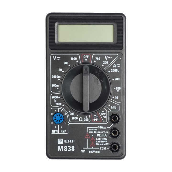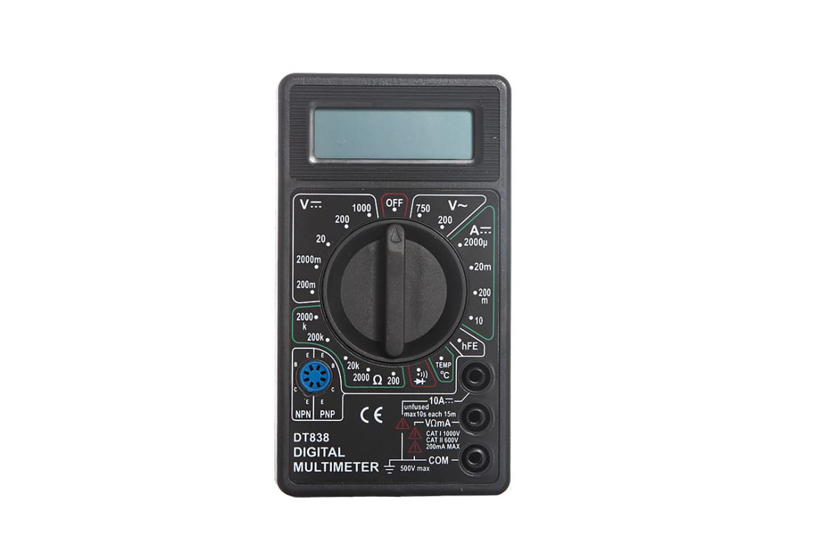 Мультиметр DT 838 61/10/513 - это надежный и универсальный измерительный прибор, который позволяет измерять различные параметры электрических сигналов с высокой точностью. Он обладает широким диапазоном измерений, включая напряжение, ток, сопротивление, ёмкость и частоту. Мультиметр оснащен большим ЖК-дисплеем для удобного отображения результатов измерений, а также имеет функцию автоматического отключения питания для экономии заряда батареи. Благодаря компактному размеру и прочному корпусу, мультиметр DT 838 61/10/513 удобен в использовании как в домашних условиях, так и на производстве.