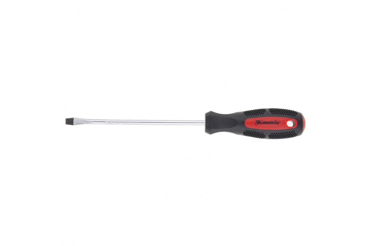 Отвертка шлицевая SL6х150 мм, Anti-Slip, CrV, с двухкомпонентной рукояткой от MATRIX - надежный инструмент для работы с различными видами винтов. Изготовлена из хром-ванадиевой стали, что обеспечивает высокую прочность и долгий срок службы. Анти-скользящее покрытие на рукоятке предотвращает случайное скольжение инструмента во время работы. Удобная двухкомпонентная рукоятка обеспечивает комфортное использование и надежный захват. Подходит для различных видов ремонтных и строительных работ.