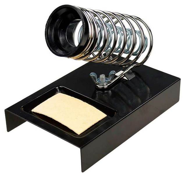 Подставка FD 7049 (ZD-10A) под паяльник предназначена для безопасного хранения паяльника при нагревании, в промежутках между использованием и охлаждении. Выполнена из витой хромированной конусообразной пружины и металлической платформы с ложементом под губку для очистки жала паяльника от остатков припоя. Губка для очистки жала паяльника в комплекте. Паяльник легко и удобно помещается в направляющую. Для безопасного хранения и бережной транспортировки предусмотрена картонная коробка.