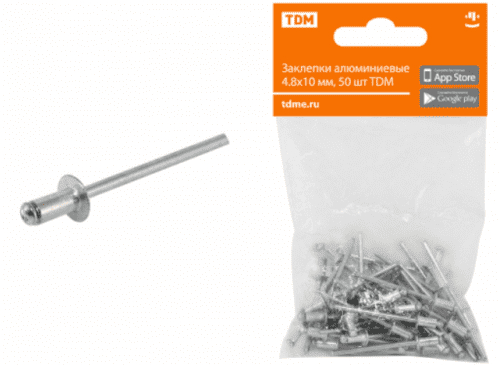 Заклепки алюминиевые 4.8х10 мм, 50 шт TDM - это набор из 50 алюминиевых заклепок размером 4.8х10 мм, предназначенных для крепления различных материалов. Эти заклепки отличаются высоким качеством и надежностью крепления, что делает их идеальным выбором для использования в ремонте, строительстве или других видов работ. Продукт поставляется в удобной упаковке от производителя TDM, что обеспечивает удобство хранения и транспортировки.