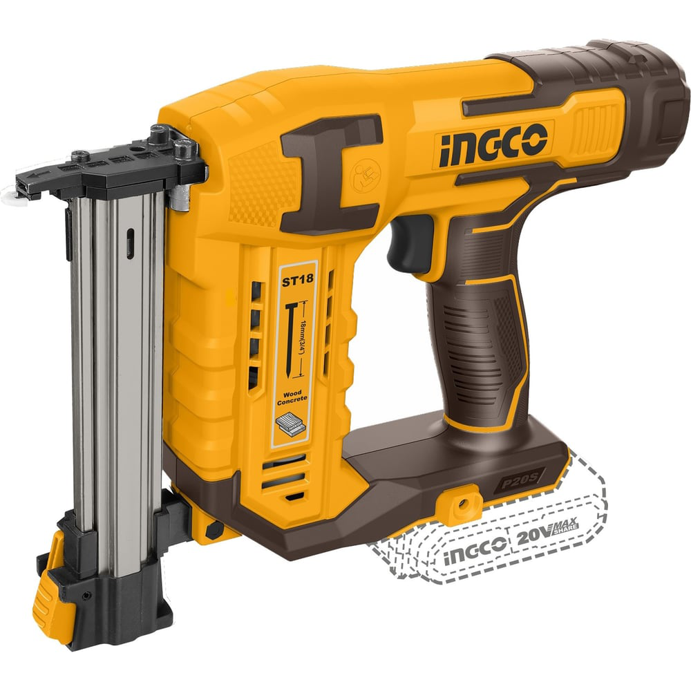 Аккумуляторный нейлер 20В ST 18мм без АКБ и ЗУ кейс SUPER INGCO CSTLI3805 пригодится при изготовлении строительных каркасов, крепления древесины к бетону и кирпичной кладке, настилки чернового пола и деревянных упаковок, сборки алюминиевых профилей непосредственно на бетоне т.д. Максимальная длина гвоздей: 18 мм Диаметр гвоздя: 2.2 мм Рукоять удобной формы снабжена нескользящим покрытием для надежного удержания инструмента без проскальзывания руки. Типы выполняемых работ: профиль для гкл, подвесы, крабы; монтаж фанеры под паркет к стяжке; пристрелка направляющих под натяжной потолок; монтаж плит greenboarb и osb к металлическому каркасу дома; Фирменный пластмассовый кейс SUPER INGCO - для удобства хранения и транспортировки. В кейсе предусмотрено место для двух аккумуляторов ёмкостью 2.0Ач и ЗУ 2.0А. (покупаются отдельно) В комплекте с инструментомне поставляется аккумулятор и зарядное устройство, что позволяет выбрать аккумулятор емкостью 2,0/4,0/5,0/6,0/7,5/8,0 А.ч. под ваши задачи и время работы.
