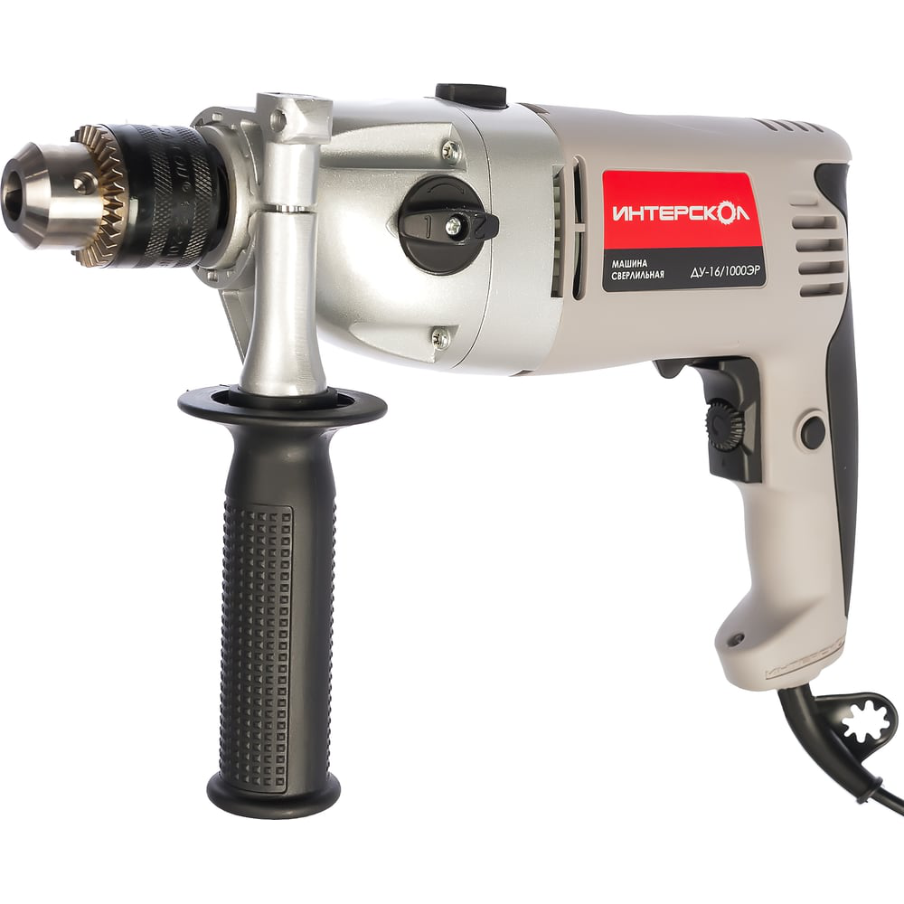 Ударная дрель Интерскол ДУ-16/1000ЭР 57.1.3.00 имеет две скорости сверления - пользователь может выбрать подходящую. Корпус редуктора выполнен из алюминия. Есть два рабочих режима: сверление и сверление с ударом. Дрель обладает системой электронной регулировки частоты вращения. Данный инструмент подходит как для профессионального, так и для бытового использования.