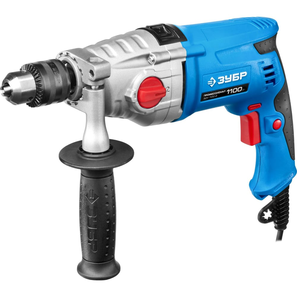 Ударная дрель Зубр Профессионал ЗДУ-1100-2 ЭРММ2 - мощный и легкий инструмент с двумя режимами работы и двухскоростным редуктором. Модель имеет дополнительную рукоятку-пенал, в которой можно хранить оснастку. Также она помогает лучше удерживать инструмент во время работы. Металлический корпус редуктора продлевает срок службы дрели. Фиксация клавиши "Пуск" делает длительную работу более удобной. Графитовые щетки имеют увеличенный срок службы, ресурс не менее 50 часов.