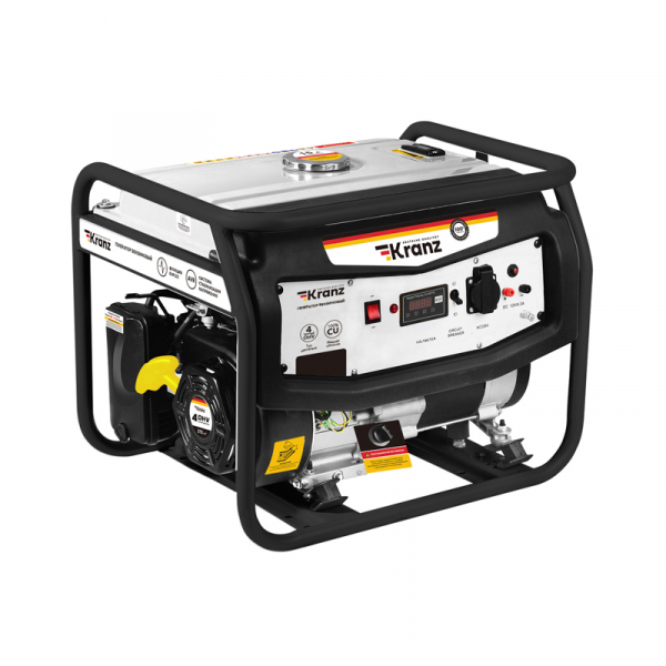 Бензиновый генератор KR5500EA предназначен для подключения мощных электроинструментов и бытовых приборов. Работает от АИ-92. Оснащен автоматической системой переключения питания основной сети электроснабжения на генератор для резервного питания электросети (для подключения требуется блок автоматики). Электростартер с автоматической воздушной заслонкой карбюратора облегчает запуск генератора с поворота ключа. Многофункциональный дисплей информативно отображает часы работы, напряжение, частоту тока и предупреждает о низком уровне масла. Обмотка альтернатора из 100% меди эффективно проводит ток и минимизирует нагрев при значительных нагрузках. Увеличенный бензобак 25 л гарантирует 10 часов работы. Стальная рама диаметром 32 мм для установки ручек и колес защищает внутренние детали от повреждений. Система поддержания параметров выходного напряжения (AVR) обеспечивает стабильное питание. Многоступенчатая система защиты от повреждений гарантирует безопасность работы. Функция Duplex предоставляет возможность работы с реактивными потребителями, такими как компрессор, насос, электроинструменты. Усиленная балка крепления двигателя и демпферные подушки снижают уровень вибраций. Генератор оборудован усиленным шнуром стартера, свечой зажигания Bosch, карбюратором от мирового лидера HUAYI, 2 евро розетками (16 А), 1 силовой розеткой (32 А) и выходом на 12 В. Предусмотрены индивидуальные предохранители для каждой розетки.
