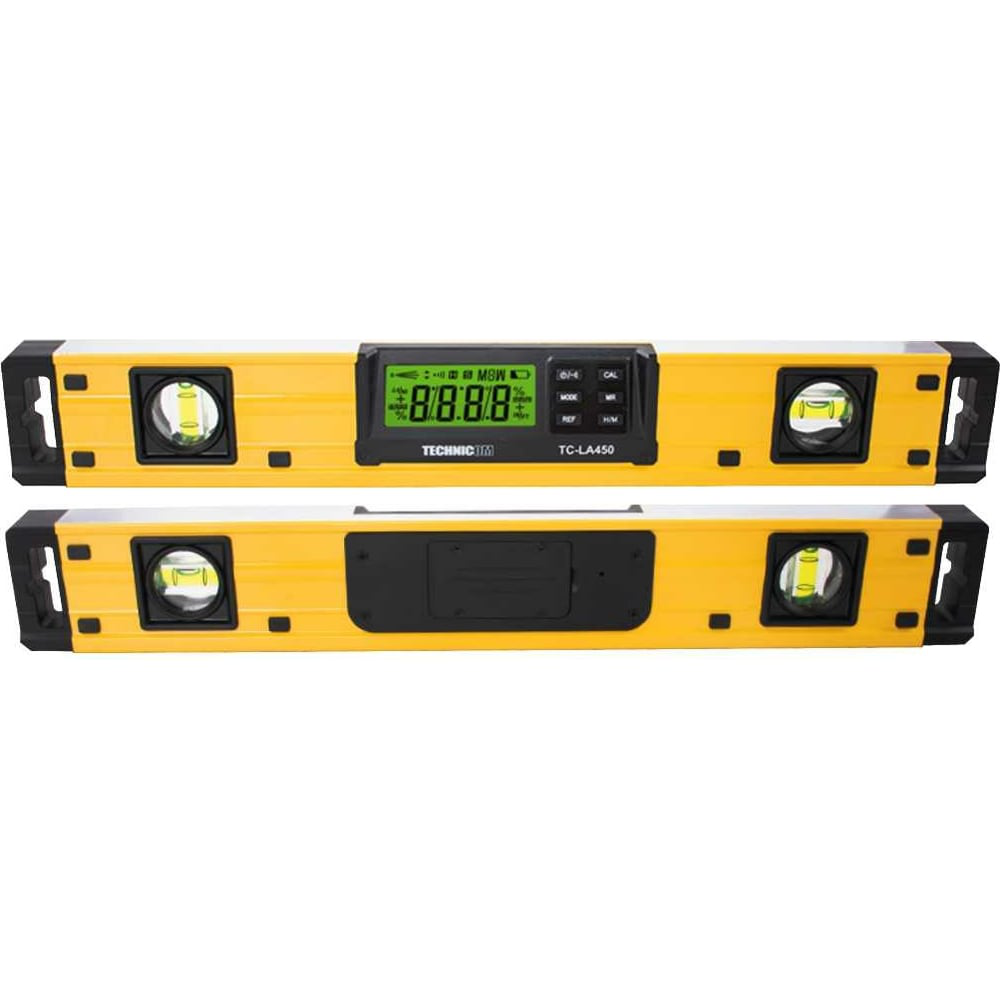 Электронный уровень-угломер TECHNICOM с магнитом, 450 мм TC-LA450 предназначен для выполнения измерений при проведении строительно-монтажных работ. Прибор оснащен информативным ЖК дисплеем с подсветкой, что позволяет пользоваться им в условиях недостаточного освещения. Корпус выполнен из анодированного алюминия, что обеспечивает достаточную прочность конструкции. Длина прибора составляет 450 мм, что позволяет его использовать не только в бытовом плане, но и в профессиональном. В основании конструкции угломера встроены магниты, обеспечивающие надежное крепление к металлическим поверхностям.