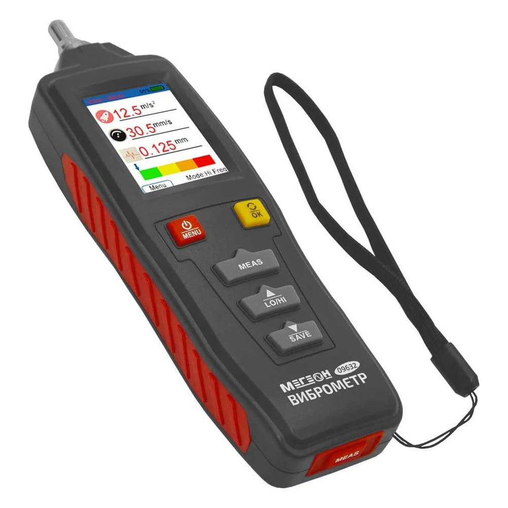 Цифровой пьезоэлектрический виброметр предназначен для контроля и измерения вибрации в механическом оборудовании. Прибор может измерять основные параметры колебательных процессов, такие как ускорение, скорость и амплитуда смещения, возникающие при работе механизмов, совершающих вращательные, колебательные и поступательные движения, может использоваться в различных отраслях промышленности, например, для диагностики неисправностей и ремонте электродвигателей, генераторов и др. Устройство имеет 2-х дюймовый цветной дисплей с подсветкой, интуитивно понятный интерфейс, позволяющий быстро освоить навыки обращения, два частотных диапазона, функции графической визуализации и сохранения полученных данных для последующего анализа, поворот экрана, настраиваемое автоматическое выключение, автономное питание от двух батареек, прочный и эргономичный корпус.