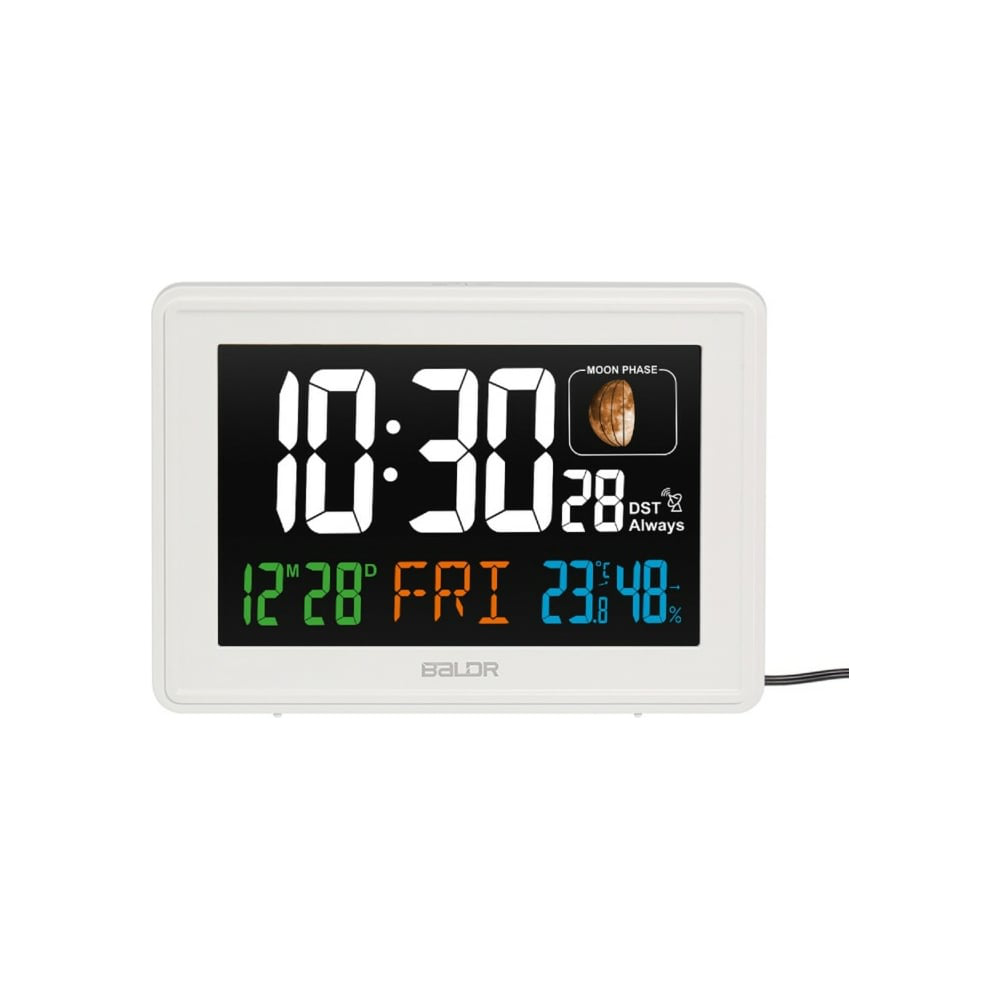 Часы с функцией термометра BALDR B0359STHR-WHITE незаменимы в спальне или офисе. Имеет не только обычные функции, которые вы ожидаете увидеть, такие как время, день недели и температура, но также функцию приема атомарного RCC, чтобы упростить настройку и постоянно поддерживать точное время. Благодаря большому дисплею вы можете читать отчетливые изображения днем или ночью, не отвлекаясь при попытке заснуть. Более того, те, кто следит за каждым этапом лунного цикла, по достоинству оценят яркие изображения лунных фаз.