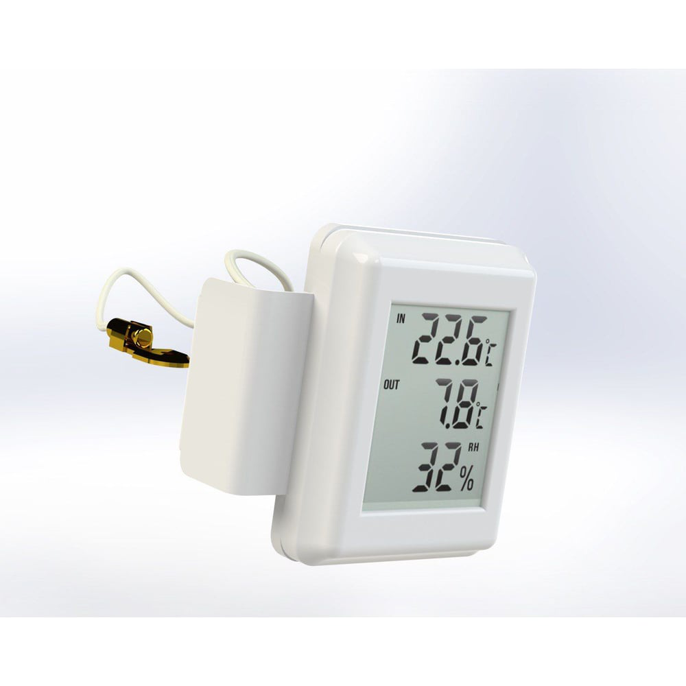 Термогигрометр электронный – измеряет и показывает температуру воздуха и влажность в помещении, а также уличную температуру. Выпускается в белом и черном цвете корпуса. Подходит для установки на любой тип ПВХ окон и ЕВРО окон. Установка проводится без дополнительных инструментов (вручную). Выбираем место для установки термогигрометра на одной из вертикальных сторон створки (сторона с ручкой/ сторона с петлями) и устанавливаем прибор на зажим. Датчик внешней температуры крепим на уличной стороне створки на ПВХ основание, согнув держатель датчика на 90 градусов так, чтобы конец датчика был на удалении от рамы окна. В данном положении уличный датчик имеет самую минимальную погрешность. Провод датчика проходит через зажим крепления устройства и не мешает пользованию окном. Для замены батарейки нужно снять корпус, открыть заднюю крышку, сменить батарейку, установить прибор на место. Дополнительные характеристики: Диапазон измеряемых температур -50 ~ +70 °C Диапазон измеряемой влажности (10%-99%) Шкала деления температуры 0,1 °С Шкала деления влажности 1% Точность измерения: температуры ±1 °С, влажность ±5 % RH Питание: 1 батарейка 1.5В; AG10, LR1130, G10