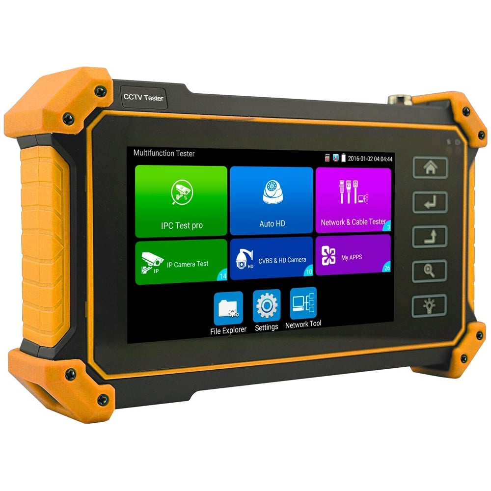 Универсальный 5-дюймовый сенсорный монитор-тестер AHD/CVI/TVI/CVBS и IP-видеосистем. Операционная система Android. Разрешение экрана -1920x1080. Поддерживаемые стандарты:ONVIF, 8Mp TVI, 8Mp CVI, 8Mp AHD,4K HDMI , VGA, RS485 PTZ, IEEE 802.11b/g/n, RTSP, IEEE 802.3af/at. Разъемы: 2хRJ45, HDMI и VGA входы, BNC, клеммы(RS485), jack 3,5мм вход, слот MicroSD.