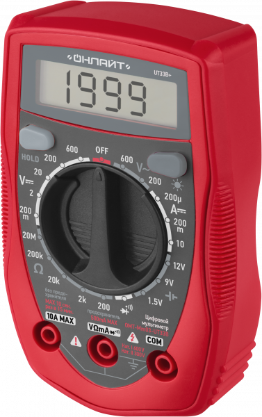Цифровой дисплей с максимальным показанием 1999 Подсветка дисплея для проведения измерений в слабоосвещенных местах Автоматическое выключение для увеличения срока службы батареи Чехол для защиты от механических повреждений Фиксация значений последних измерений кнопкой HOLD Оптимальная скорость: 2–3 измерения в секунду Автоматическая индикация перегрузки Индикатор низкого заряда батареи Тестовый щуп и батарея в комплекте (крона, 9 В) Диапазон рабочих температур 0…+40 С