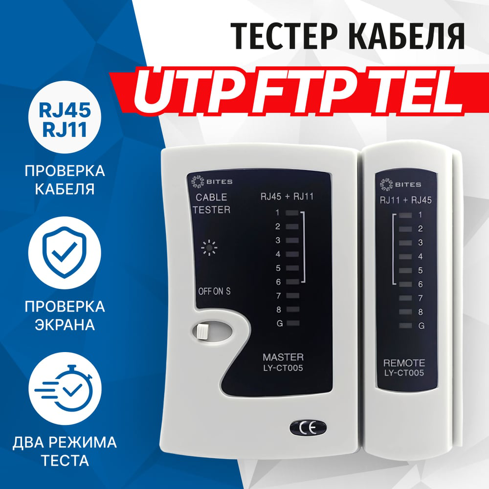 Тестер кабеля LY-CT005 разработан для тестирования состояния сетевых соединений, телефонных линий на такие сбои, как обрыв цепи, короткие замыкания, перекрестные помехи и т.д. Автоматическое режим с регулировкой скорости сканирования.Внимание! Не используйте в активной цепи, чтобы избежать выгорания устройства.Технические характеристики:Тип тестируемых кабелей: витая пара / телефонныйПрименение: обнаружение ошибок в схеме разводки, замыканий, обрывов, кросс-соединений, проверка заземления экранированного кабеляМакс. расстояние действия (м): 305Тип индикации: светодиоднаяРежимы тестирования: ON — стандартная скорость, S — медленный режимРазъемы: RJ-45, RJ-11Источник питания: батарея 9В «Крона» (в комплект не входит)