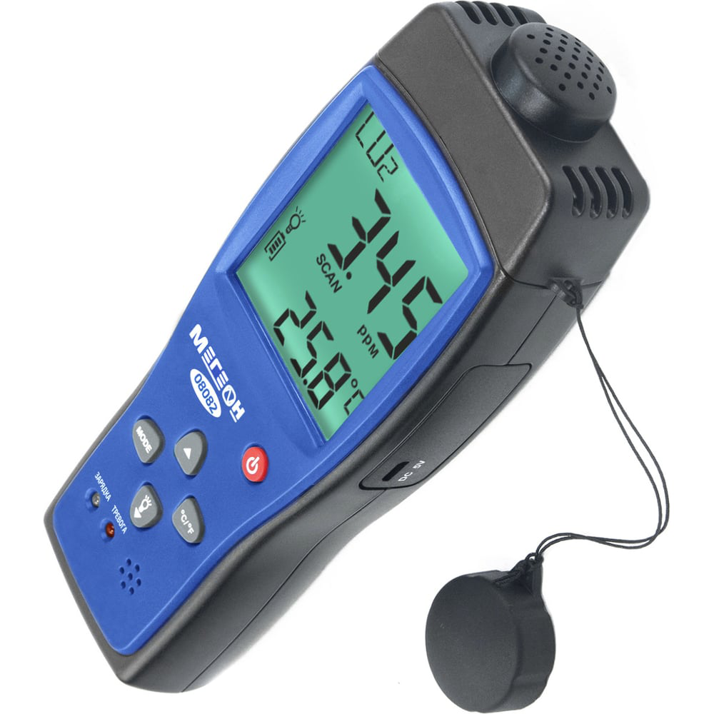 Детектор углекислого газа МЕГЕОН 08082 используется для определения концентрации углекислого газа в воздухе. Диапазон измерения составляет 350-9999 ppm. Модель отличается высокой чувствительностью. Дисплей с подсветкой облегчает считывание данных в слабоосвещенных помещениях. Предусмотрено два настраиваемых уровня тревоги.