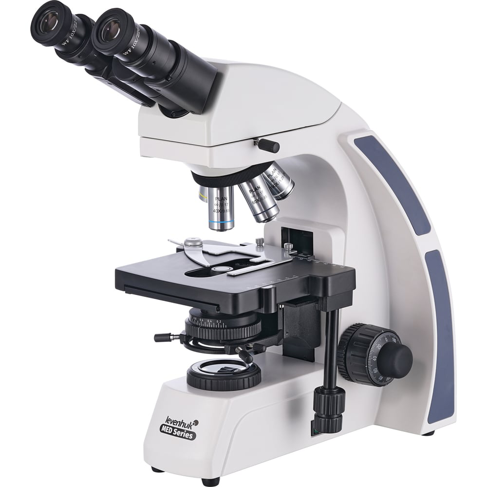 Лабораторный микроскоп Levenhuk MED 40B предназначен для профессиональной деятельности. Благодаря планахроматической оптике он передает четкое и детализированное изображение без искажений, приближает в диапазоне от 40 до 1000 крат, позволяет проводить наблюдения «сухим» или иммерсионным методом. Благодаря «бесконечной» оптике на Levenhuk MED 40B можно устанавливать дополнительные компоненты для расширения его возможностей. Этот микроскоп – микробиологический прибор для сложных исследований и незаменимый помощник в работе биохимика, микробиолога или медика. Микроскопы Levenhuk серии MED 40 снабжены оптической системой, скорректированной на бесконечность, которая применяется в микроскопах профессионального и высокого класса. Эта система включает объективы класса Infinity PlanAchromat и позволяет получать чистые, высококонтрастные изображения с высокой степенью плоскостности. Одна из самых важных особенностей бесконечной оптической системы заключается в том, что она позволяет устанавливать в оптический путь микроскопа между объективами и окулярным тубусом любые дополнительные компоненты. К ним можно отнести поляризаторы и эпи-флуоресцентные осветители. В итоге модульный принцип конструкции и простота в эксплуатации делают Levenhuk MED 40 оптимальными микроскопами для использования разных видов микроскопии и работы в гематологических, гистологических, микробиологических и других лабораториях. Бинокулярная насадка наклонена под углом 30° и может поворачиваться на 360°. В оптической системе используются широкопольные окуляры и планахроматические объективы, скорректированные на бесконечность. Они сделаны из стекла с антигрибковым покрытием. Передаваемая картинка четкая, детализированная и контрастная, поле зрения плоское, а оптические искажения сведены к минимуму. Окуляры дают 10-кратное увеличение, позволяют работать с протяженными образцами, имеют диоптрийную коррекцию. Объективов пять, они дают разное увеличение, причем три объектива с наибольшей кратностью снабжены пружинящими оправами. Для масляной иммерсии применяется 100-кратный объектив. Настроить резкость можно при помощи ручек грубой и точной фокусировки. Образцы размещаются на двухкоординатном предметном столике при помощи препаратоводителя. Яркая 5-ваттная подсветка находится в нижней части микроскопа. Есть конденсор Аббе с ирисовой диафрагмой. Яркость подсветки регулируется, для ее питания используется сеть переменного тока. Можно настраивать освещение по методу Келера. Микроскопы микробиологической лаборатории – это приборы для решения широкого круга задач, которые снабжены продвинутыми оптическими компонентами и позволяют использовать разные методы исследований.