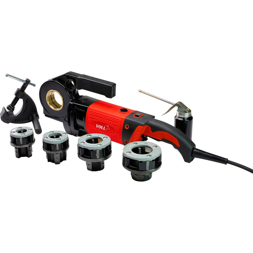 Электрический резьбонарезной клупп V-Matic B1 предназначен для быстрой и точной нарезки трубной конической резьбы BSPT на стальных трубах. Инструмент комплектуется набором головок 1/2", 3/4", 1", 1 1/4", которые позволяют сразу приступить к работе. Мощный двигатель 1700 Вт обеспечивает высокий крутящий момент. Механический редуктор имеет переключатель вперед/назад. Область применения: Электрический резьбонарезной клупп V-Matic B1 предназначен для быстрой и точной нарезки резьбы на стальных трубах. V-Matic B1 используется на производстве, на строящихся объектах на монтажных и ремонтных предприятиях. Особым успехом V-Matic B1 пользуется у монтажных и ремонтных предприятий в сфере жилищно-коммунального хозяйства. Отличительные особенности электрического клуппа V-Matic B1: мощный двигатель 1700 Вт с большим крутящим моментом; механический редуктор с переключателем вперед/назад; Тип резьбы BSPT коническая Скорость рабочая 25 об/мин надежная фиксация резьбонарезной головки пружинным стопорным кольцом; эргономичная конструкция позволяет удобно работать в труднодоступных местах; малый вес и уровень шума