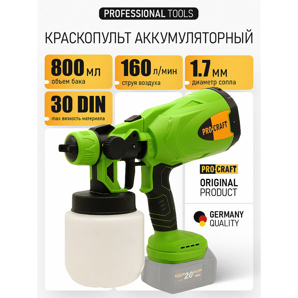 В нашем магазине «Главэлектрика» в Екатеринбурге, вы можете приобрести товар: «Краскопульт аккумуляторный PROCRAFT 20В 0,8л, без АКБ и ЗУPSE20» с доставкой по г. Екатеринбург.