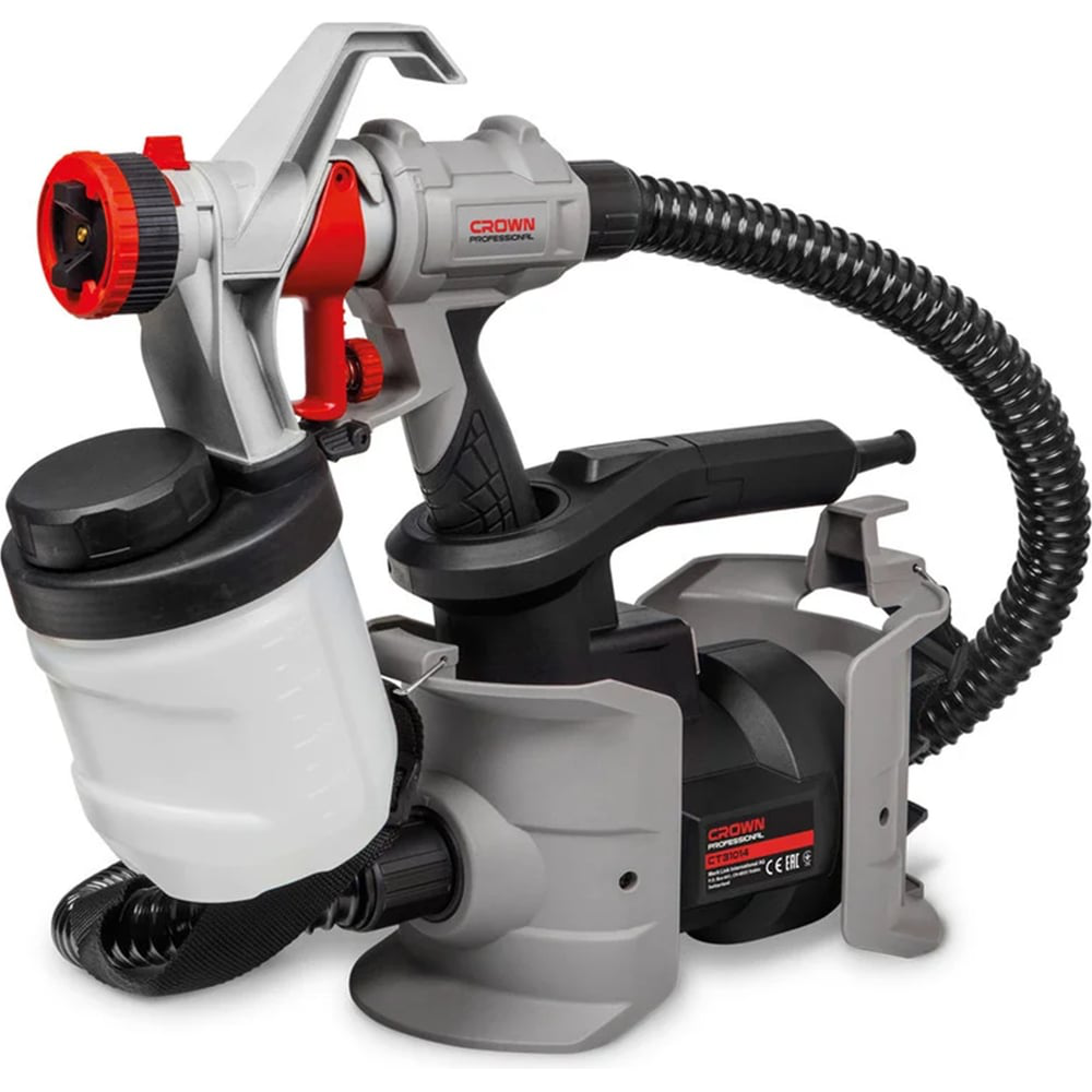Краскопульт электрический CROWN CT31014 -электрический краскопульт для окрашивания разнообразных поверхностей красками и лаками с DIN 100. Технология переноса HVLP обеспечивает равномерное распределение лакокрасочных материалов с наименьшими потерями. Краскопульт позволяет выполнить лакокрасочные работы с максимальным комфортом и эффективностью, а также сэкономить время, ведь производительность краскопульта составляет 1 л/мин. Объем бачка 900 мл и функция долива окрашивающей жидкости обеспечивают продолжительность работы. Направление струи можно регулировать, это делает возможной работу в труднодоступных местах. Регулировка расхода позволяет работать с различными лакокрасочными материалами. Благодаря обрезиненной рукоятке и ручке для переноса инструмента обеспечивается удобное использование. Краскопульт CT31014 оснащен шлангом длиной 1,8 метра. Преимущества: Регулятор расхода материала Регулятор ширины факела Бак для краски с внешней крышкой для удобной заправки Разборная конструкция для очистки Фильтр воздухозаборника Нескользящее покрытие рукоятки Съёмный плечевой ремень В комплект поставки входит: измерительная ёмкость, игла, щётка, сопло 2,5 мм, плечевой ремень ВАЖНО: правильная эксплуатация подразумевает очистку и промывку устройства после окончания работ