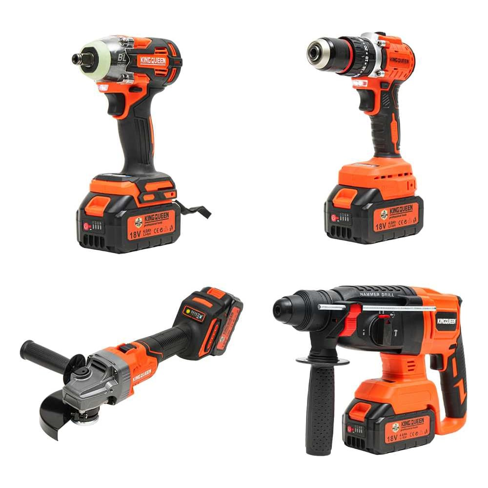 Набор 4 предмета АКБ (Болгарка, Шуруповерт, Перфоратор, Гайковерт) KINGQUEEN - это идеальное решение для ремонта. Он включает в себя четыре электрических инструмента: шуруповерт, гайковерт, перфоратор и угловую шлифовальную машину, которые позволят вам быстро и эффективно выполнять широкий спектр задач. Помимо всего прочего в данном наборе есть и оснастка.