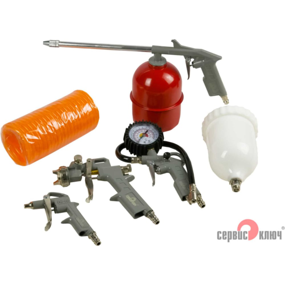 Покрасочный набор СЕРВИС КЛЮЧ 70605 служит для нанесения декоративных и изоляционных покрытий, очистных работ и т.д. Все инструменты выполнены из качественного металла, поэтому прослужат длительное время. Пистолет для подкачки шин оснащен манометром - для визуального контроля давления. Краскопульт имеет нижнее расположение бачка для лучшего обзора рабочей зоны. Благодаря специальным петлям инструменты можно хранить в подвешенном состоянии.