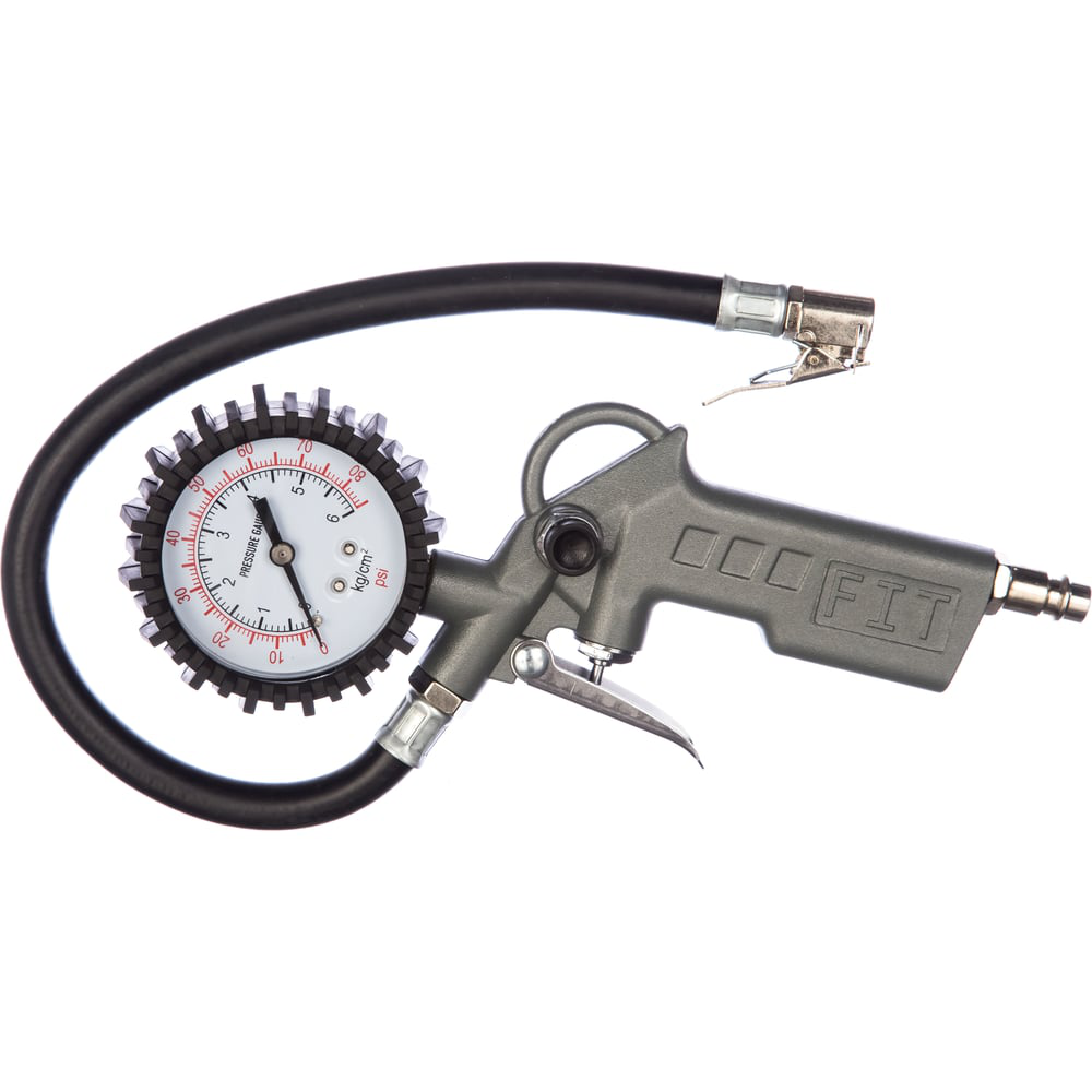Пистолет с манометром FIT 81047 - инструмент для подкачки автомобильных шин. Диаметр ниппеля составляет 1/4". Манометр позволяет измерить и контролировать давление в шинах. Быстросъемное соединение обеспечивает удобное подключение шланга для подачи сжатого воздуха. Алюминиевый корпус обладает ударопрочностью.