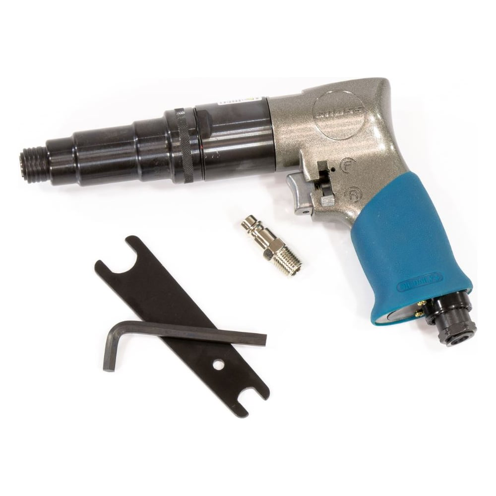 Пневматический шуруповерт используется для закручивания/откручивания различных крепежных изделий и сверления отверстий. Рукоятка с резиновым покрытием способствует комфортной работе. Модель отличается внушительным рабочим ресурсом, и способна длительное время работать без остановки.