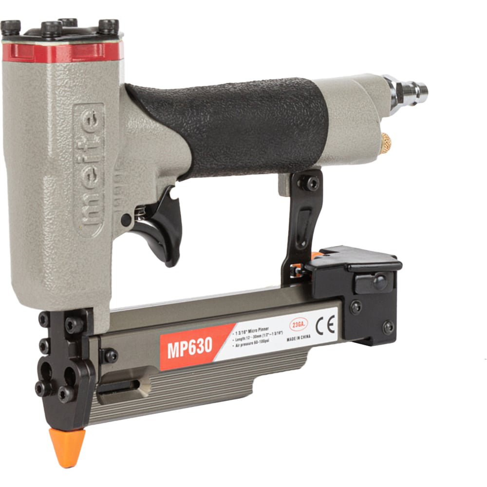 Шпилькозабивной пневмоинструмент MEITE MP630 GBA05D00302 предназначен для скрепления некрупных деталей из дерева или пластика и не несущих конструкций. Области применения: скрепление планок, штапиков, изготовление картинных и деревянных оконных рам, монтаж молдинга и декора, требующих аккуратного внешнего вида готового изделия. Используется с микрошпильками размером от 12 до 30 мм, которые не оставляют следа на поверхности. Скорострельность и моментальная перезарядка крепежа увеличивает производительность. Инструмент имеет защиту от непреднамеренного пуска. Задний выхлоп отводит воздух от зоны действий.
