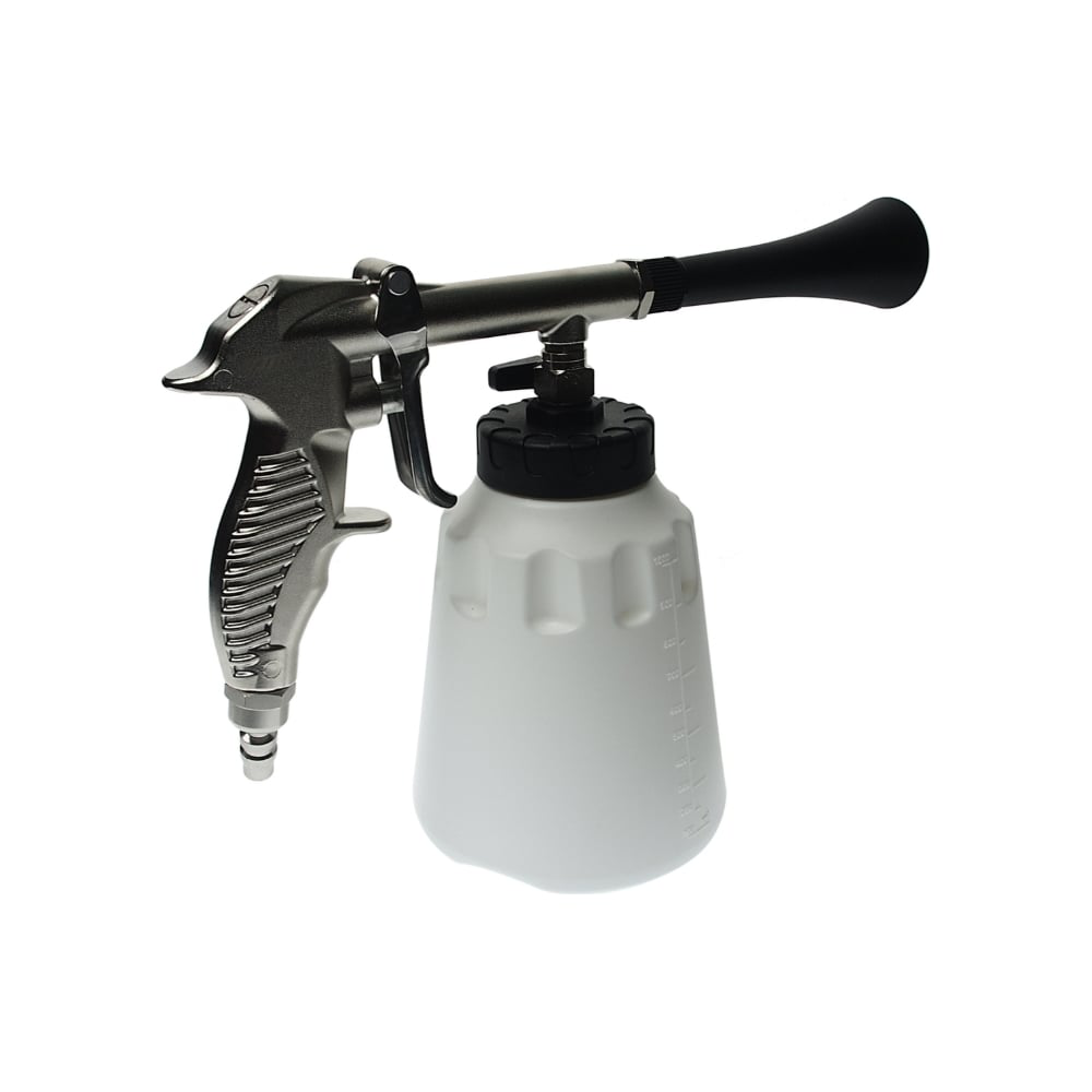 Применяется для очистки автомобильных сидений, обшивки, внутренних элементов салона и подкапотного пространства. Соединительный штуцер: 1/4" PT. Рабочее давление: 6-15 бар. Рукоятка из алюминиевого сплава, емкость — HDPE. Расход воздуха: 8 бар ≥240 л/мин. Порядок работы: С помощью регулятора установите необходимый уровень подачи жидкости: для максимальной подачи жидкости через распылитель регулятор должен быть повернут до упора по часовой стрелке. Для снижения уровня подачи жидкости проворачивайте регулятор против часовой стрелки. Инструмент может работать вертикально, к примеру, для очистки потолка автомобиля. После использования убедитесь, что бак пуст. Продуйте на протяжении 3-4 секунд пневмоочиститель для удаления капель чистящего средства из шлангов. Уберите в недоступное для детей место. Внимание! Внешний вид инструмента может отличаться от изображения на фотографии.