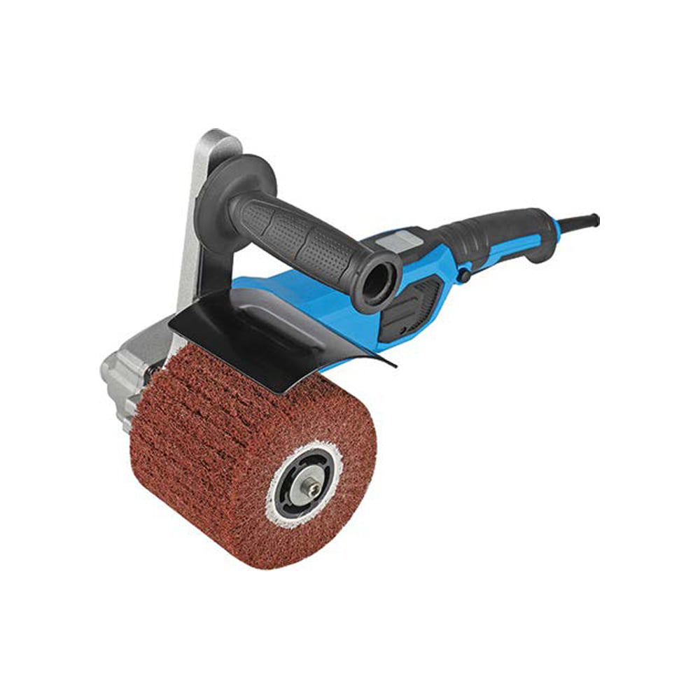 Барабанная шлифовально-полировальная машина предназначена для обработки плоских металлических и деревянных поверхностей с использованием различных насадок. Удаление краски и ржавчины, шлифовка, полировка и сатинирование металла, браширование древесины – основные работы, выполняемые различными насадками (стальными и нейлоновыми щетками, полировальными барабанами и другими насадками диаметром 100 и 180 мм), которые устанавливаются на шлифмашину. Плавный пуск, 6-ступенчатая регулировка скорости работы. Эффективная работа благодаря широкому ролику. Высокая безопасность благодаря защитному экрану - защищает от металлических частиц и осколков.