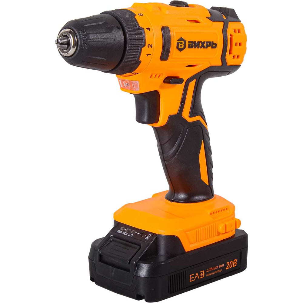Дрель-шуруповерт ВИХРЬ ДА-20Л-2КА предназначена для высверливания отверстий в различных материалах, таких как дерево, металл, пластик, а также для работы с крепежными элементами. А надежность и продуманность конструкции позволит быть уверенным в длительном сроке службы и комфорте при эксплуатации.Отличительные особенности шуруповерта ВИХРЬ ДА-20Л-2КА:Устройство работает от li-ion аккумуляторной батареи. Их в комплекте две. Емкость одной батареи составляет 1,5 Ач, а полностью зарядиться она за 1 ч. Аккумуляторный шуруповерт позволяет не зависеть от наличия на объекте электрического тока.Модель имеет две скорости работы: 0-400 об/мин и 0-1400 об/мин. Благодаря этому можно аккуратно работать с любым материалом.Функция реверса полезна при выкручивании крепежных элементов, а также при их ослаблении.Подсветка рабочей зоны избавляет от необходимости использовать фонарик.Эргономичная прорезиненная рукоятка, а также вес в 1,3 кг не позволят устать даже при длительной работе.Устройство удобно хранить и переносить в специальном аккуратном кейсе.Дрель-шуруповерт ВИХРЬ ДА-20Л-2КА станет прекрасным помощником как домашнему мастеру, так и строителю.