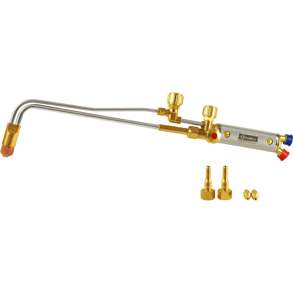 Комбинированный резак предназначен для ручной газокислородной разделительной резки нелегированных и низколегированных, низкоуглеродистых сталей толщиной до 200 мм. Универсальная конструкция резака позволяет без замены рабочих элементов применять следующие газы: ацетилен; пропан. Благодаря длине трубок работник всегда находится на безопасном расстоянии от зоны резки. Небольшой собственный вес облегчает удержание инструмента и позволяет работать дольше без усталости