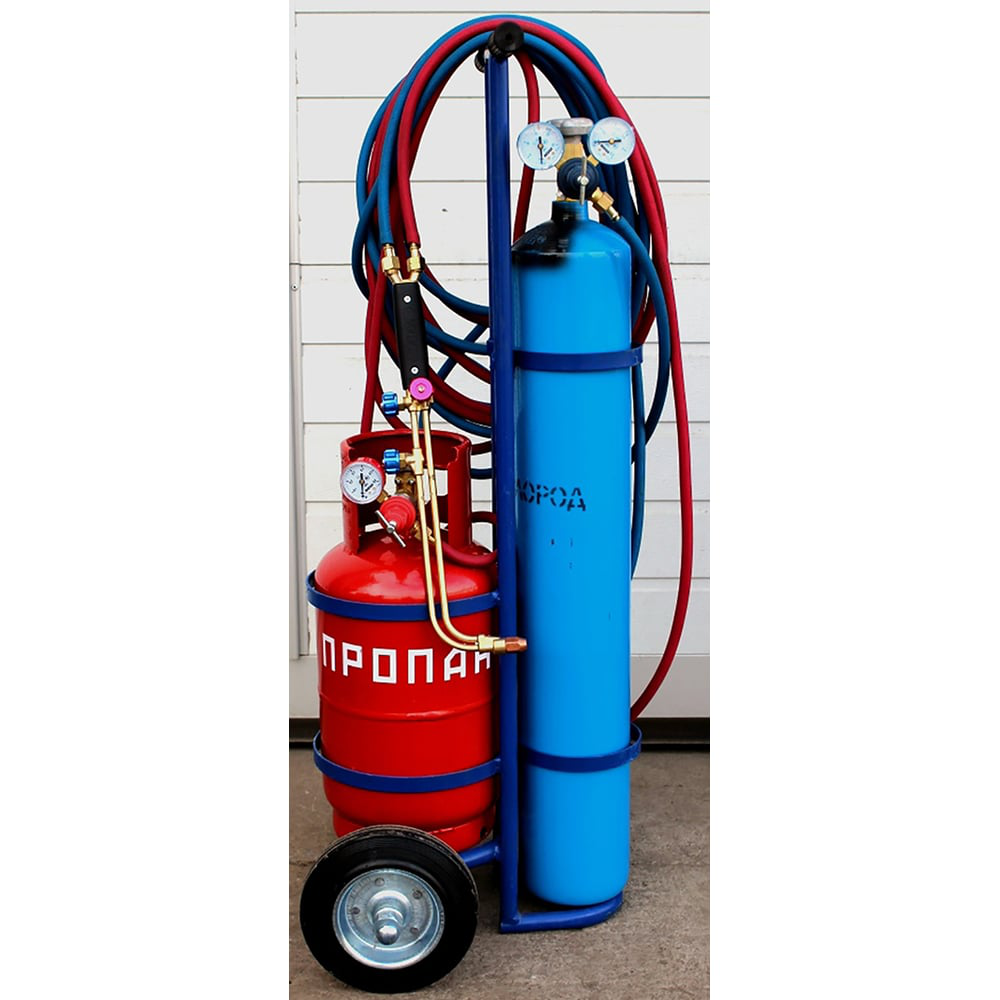 Газосварочный пост Дока ПГУ-10П DK.1000.01418 предназначен для ручной резки и сварки металлов с применением смесей (пропан, природный газ) + кислород. Представляет собой передвижное устройство, состоящее из тележки, на которой установлены кислородный баллон, пропановый баллон, редуктор кислородный, редуктор пропановый, соединительные кислородный и газовый рукава, резак и горелка газокислородные. Поставляется в разобранном виде. Пост разрешается перевозить в любых закрытых транспортных средствах (баллоны должны быть при этом пустыми). Хранить в помещении при температуре от +5С до +40С и относительной влажности воздуха не более 70%.