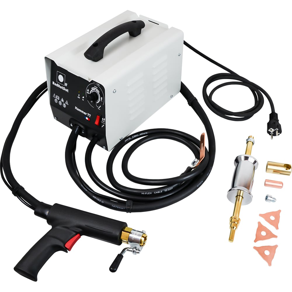 Cпоттер для кузовного ремонта RedHotDot HAMMER TT 048782 широко применяется в сфере промышленности и автосервиса. Мощный прибор обеспечивает качественное соединение стальных элементов конструкции. Благодаря своим небольшим габаритам модель не вызывает неудобств при хранении. Упрощенная система настройки SINERGIC существенно снижает риск ошибки при выставлении сварочного импульса. Для долгого срока службы предусматривается система защиты от перегрузок (есть специальный индикатор). Не используется для сварки листов металла друг с другом.