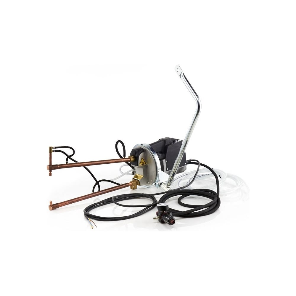 Ручные клещи для точечной контактной сварки TECNA 7913/380 100025441 с пневматическим приводом, водяным охлаждением и гироскопическим подвесным кронштейном, служат для сварки металлических листов толщиной 2+2мм или прутков 6+6мм. Клещи снабжены функцией компенсации сварочного тока, что позволяет качественно сваривать черную, оцинкованную и нержавеющую сталь. Клещи, стандартно, поставляются без комплекта плеч. Плечи длиной 150, 250, 350, 500мм являются опциональными и заказываются отдельно. Также, клещи необходимо укомплектовать пружинным балансиром и блоком охлаждения.
