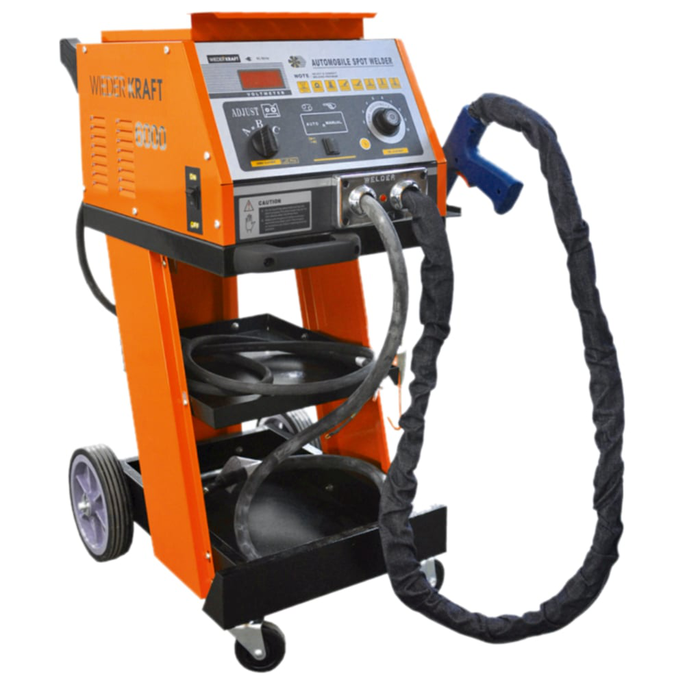 Споттер (200-240 В, 50/60 Гц, 50A / max 4400A) WIEDERKRAFT WDK-6000 используется для выравнивания металлических поверхностей при проведении кузовных работ. Благодаря наличию тележки для транспортировки оборудования существенно повышает мобильность устройства. Сила сварочного тока позволяет проводить эффективную работу. В комплекте поставляется сварочный кабель и зажим массы. Благодаря наличию аналогового регулятора времени есть возможность контролировать продолжительность проведения сварочных работ. Не подходит для сварки листов. Входная мощность 11 кВА; Входной ток 50 А; Выходное напряжение нагрева шайб ~1-12 В; Выходное напряжение приварки угольного электрода ~6-10 В; Регулировка времени сварки 1-10 сек.