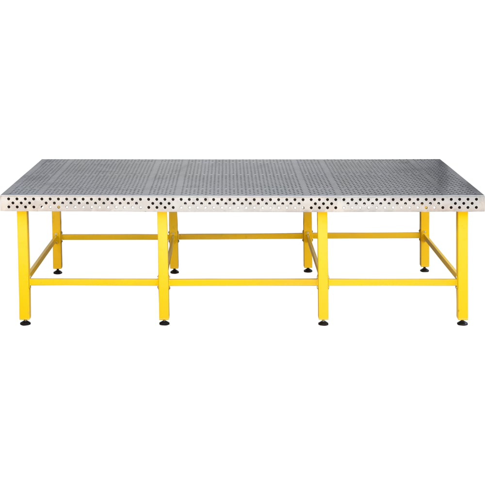 Сварочный стол Старк-Профи 2950х1450х100мм, 10мм шаг отверстий 25х25 4627185351092 изготовлен из конструкционной холодноформуемой стали, которая отличается высокой прочностью и стойкостью к нагрузкам. Столешница предназначена для установки на специальные опоры, которые подбираются отдельно по высоте в зависимости от типа работ.