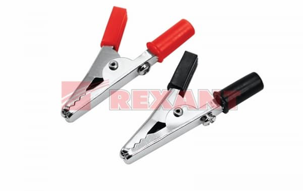 Зажим "крокодил" 5А 55мм REXANT представляет собой электромеханическое устройство, предназначенное для оперативного соединения или разъединения контакта проводов при выполнении измерительных работ или монтажа электрических и слаботочных сетей. Зажим получил свое название за схожесть с челюстями крокодила. Состоит он из двух фигурных деталей с «крокодильими» зубцами, скрепленных серединами специальным штифтом и способных поворачиваться на некоторый угол вокруг оси соединения. К одной из деталей монтируется контактный провод. Сжатие «челюстей» обеспечивается пружиной, вставленной с другой стороны штифта. Контактная часть изделия изготавливается из стали с никелированным покрытием. В целях безопасной эксплуатации зажима, ручки имеют изоляцию, изготовленную из ПВХ, что предохранит от поражения специалиста электрическим током. Чаще всего зажимы применяются парами черного и красного цвета (50/50). Основные характеристики:- общая длина зажима – 55мм;