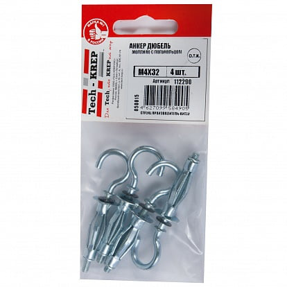 В нашем магазине «Главэлектрика» в Екатеринбурге, вы можете приобрести товар: «Дюбель (анкер) Молли RO (с полукольцом) М4х32 (4 шт) - пакет Tech-Krep» с доставкой по г. Екатеринбург.