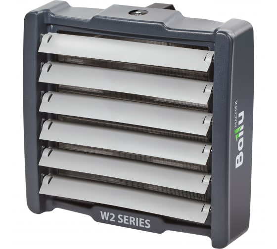 Водяной тепловентилятор Ballu BHP-W2-70-LN НС-1303793 – прибор для обогрева складских и промышленных помещений большой площади с высотой потолков более 6 метров. Тепловая мощность прибора от 35 до 70 кВт в зависимости от режима производительности и температуры теплоносителя. Максимальная рабочая температура теплоносителя 130°С при давлении 15 бар, что позволяет использовать в качестве теплоносителя пар и перегретую воду. Осевой вентилятор диаметром 450 мм создает воздушный поток длиной 24 метра и обеспечивает максимальную производительность до 4800 м³/ч. В летнее время года водяной тепловентилятор можно использовать в качестве файнкола, для этого необходимо подключить его к источнику холодной воды.