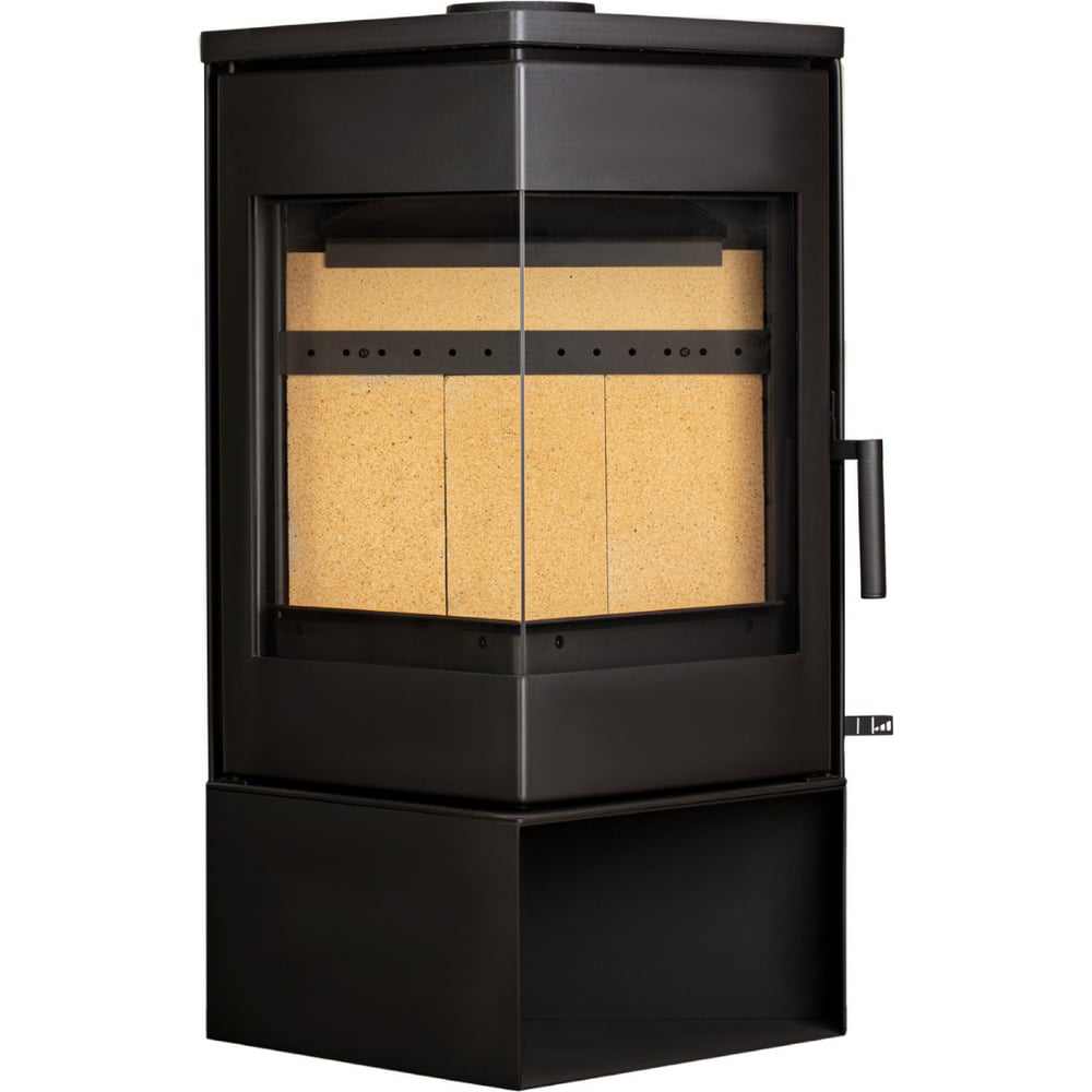 Печь может быть установлена на пол на постамент либо повешена на стену с постаментом или без него. Для безопасности по задней стенке установлена дополнительная защита листом вермикулита (между листами металла). Печь-камин оснащена всеми современными характеристиками: система воздушной очистки стекла, система вторичного дожига газов, система подачи воздуха из «вне», возможность подключения дымохода сверху либо сзади. Обзор огня с двух сторон. Печь-камин ЛеМан оборудована большой остекленной угловой дверкой. По своему желанию вы можете изменить сторону открывания двери (в комплект входит две ручки). Постамент печи также является универсальным и может быть установлен на левую либо правую сторону. Максимальная длина дров 250 мм.