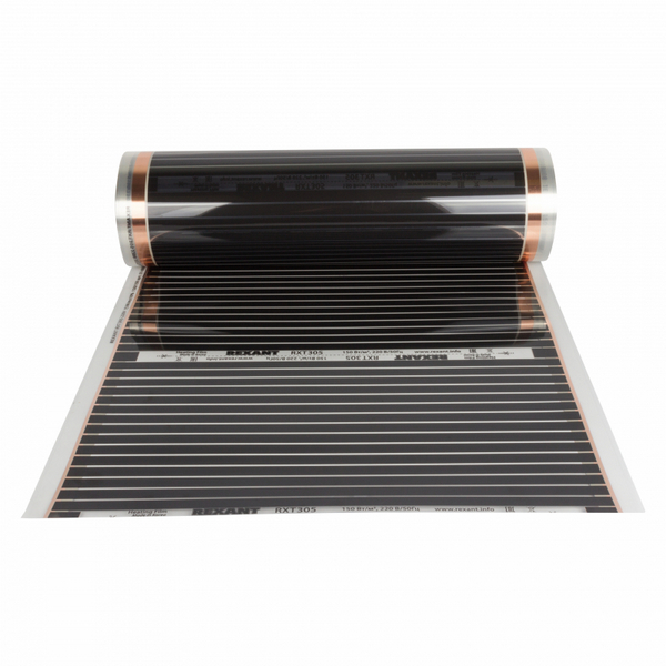 Пленочный теплый пол Rexant Optima 150 13 /0,5 х 26 м/1950 Вт 51-0516-7 подойдет для использования как в закрытых, так и в открытых помещениях. Монтаж пленки осуществляется под ламинат, ковролин, линолеум или паркетную доску. Теплый пол состоит из карбоновой нагревательной пленки.