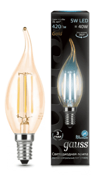В нашем магазине «Главэлектрика» в Екатеринбурге, вы можете приобрести товар: «Gauss LED 5Вт E14 2700K/3000К Candle tailed Golden Филаментная» с доставкой по г. Екатеринбург.