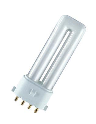 Компактная люминесцентная лампа OSRAM DULUX S/E для электронных ПРА (ЭПРА). Лампы могут работать от батарей, солнечных генераторов или от сети. Могут работать при низком и высоком напряжении. Срок службы в 10 раз больше, чем лампы накаливания аналогичной яркости.