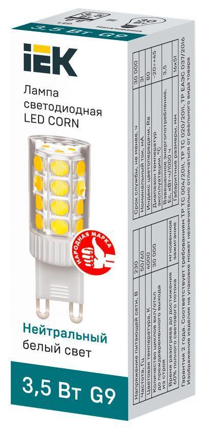 Светодиодная капсульная лампа LED CORN капсула 3,5Вт 230В 4000К керамика G9 IEK является заменой капсульных галогенных ламп соответствующего цоколя и используются как для основного освещения жилых и коммерческих помещений, так и для точечной и акцентной подсветки.
