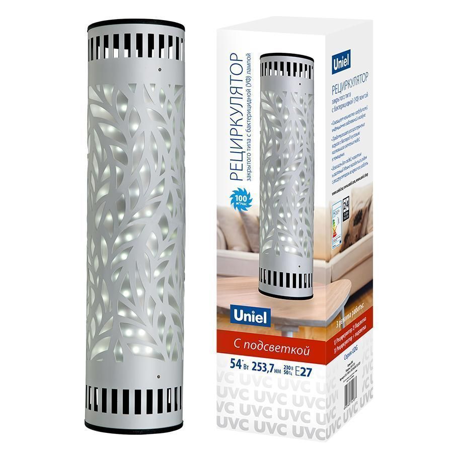 Расширенная гарантия на товар составляет 2 года. поставщик рекомендует использовать лампы накаливания с цоколем E27 для освещения площади 3 м2. Ультрафиолетовый бактерицидный рециркулятор Uniel UDG-V100A UVCB/6500K D01 Steel UL-00007987 в современном стиле используется в интерьере Для офиса с установкой На стол.