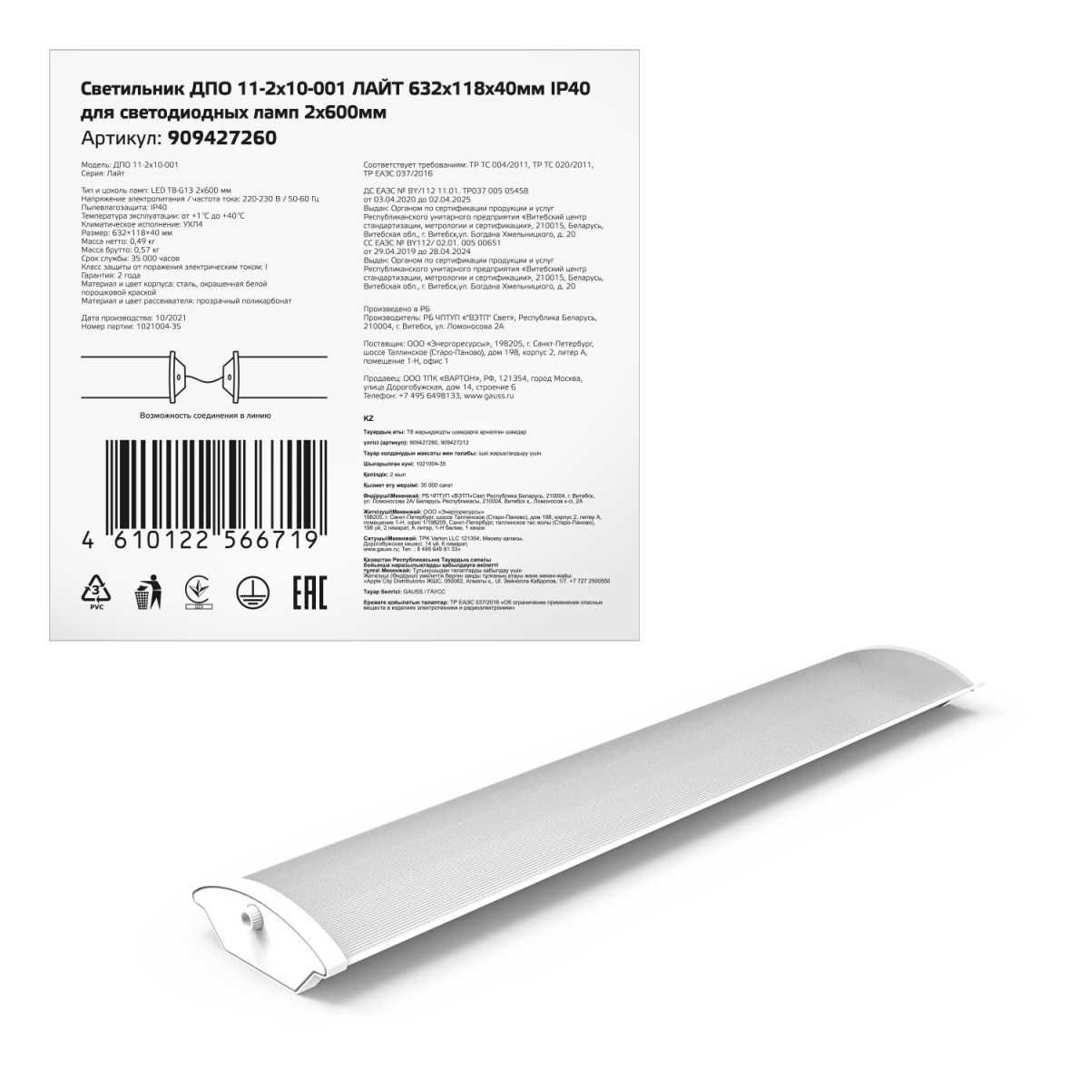 Расширенная гарантия на товар составляет 2 года. поставщик рекомендует использовать лампы накаливания с цоколем G13 для освещения площади не указана м2. Настенно-потолочный светильник Gauss 909427260 в современном стиле используется в интерьере Для офиса с установкой На потолок, на стену.
