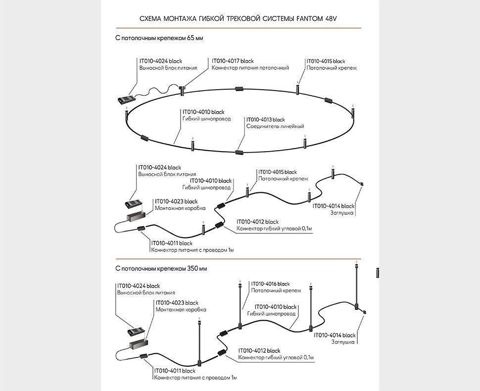 Расширенная гарантия на товар составляет 2 года. поставщик рекомендует использовать лампы накаливания с цоколем не указан для освещения площади не указана м2. Шинопровод гибкий Italline Fantom IT010-4010 black в современном стиле используется в интерьере не указан с установкой На потолок.